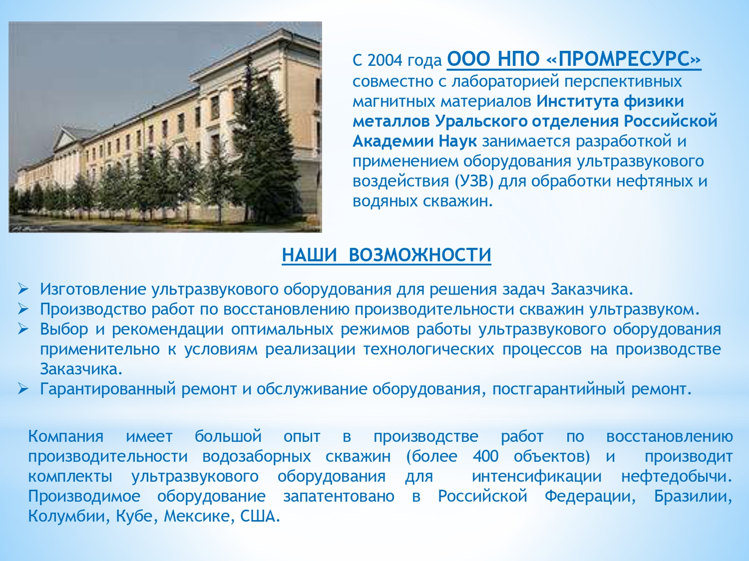 Производимое оборудование